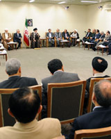 مقام معظم رهبری یکی از اشکالات دولت را حضور کمرنگ در میان نخبگان دانشگاهی و حوزوی دانستند و تأکید کردند: باید رئیسجمهور و وزراء اقدامات دولت در بخشهای مختلف بویژه در خصوص مسائل اقتصادی را که از مسائل اصلی کشور و مورد چالش موافقان و مخالفان دولت است، در جمع نخبگان مطرح کنند تا با استفاده از دیدگاهها و همچنین نظرات انتقادی آنان، همافزایی بوجود آید.