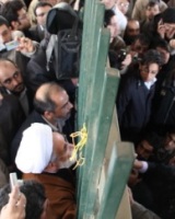 آفتاب: در حالیکه کروبی قصد ورود به دانشگاه همدان را داشت با استقبال دانشجویانی مواجه شد که در پشت نردههای دانشگاه انتظار او را میکشیدند.