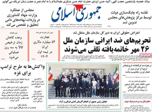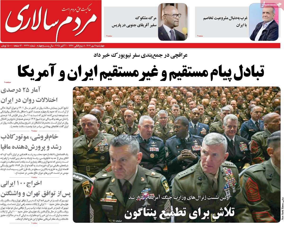 تصاویر روزنامههای امروز چهارشنبه نهم مهر ۱۴۰۴ را میبینید.