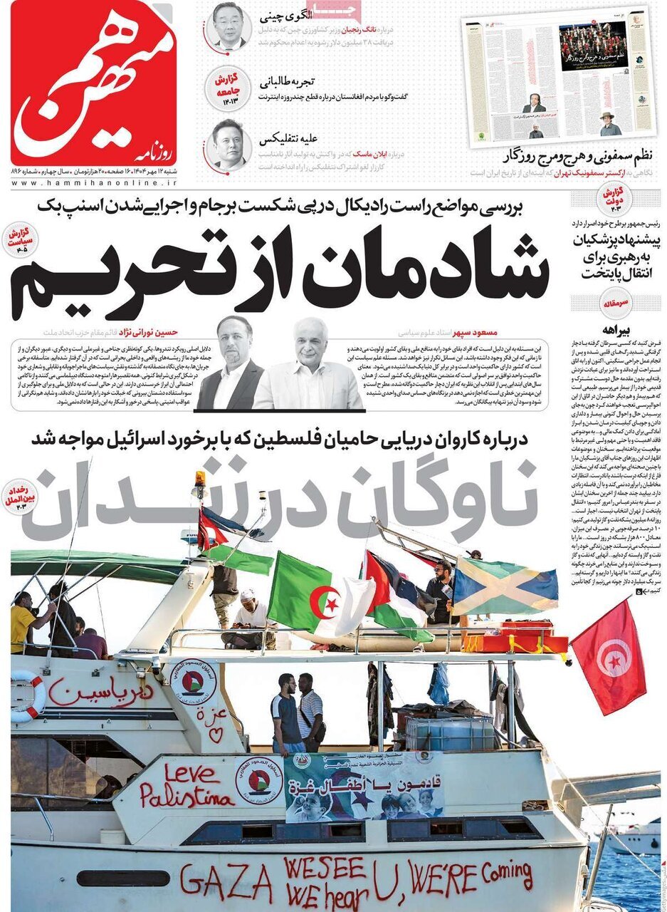 تصاویر روزنامههای امروز شنبه ۱۴۰۴/۰۷/۱۲ را میبینید.