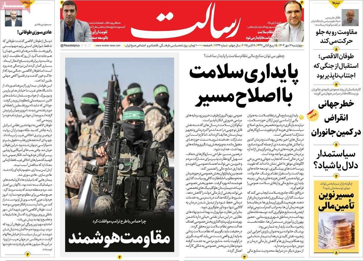 تصاویر روزنامههای امروز چهارشنبه ۱۶ مهر ۱۴۰۴ را میبینید.