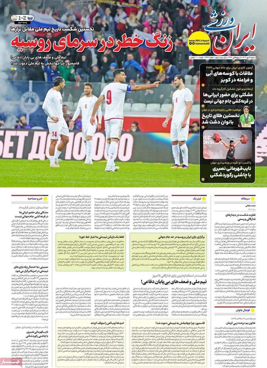 تصاویر روزنامههای امروز شنبه ۱۹ مهر ۱۴۰۴ را میبینید.