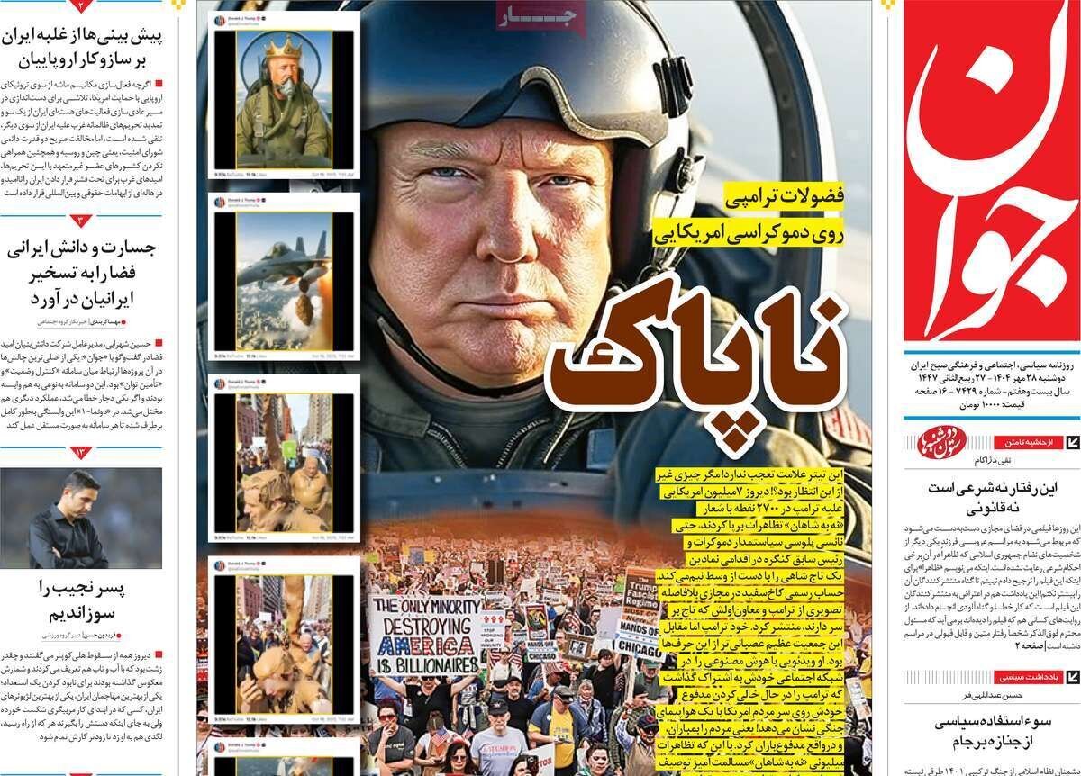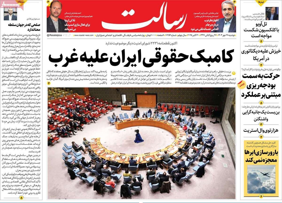تصاویر روزنامههای امروز دوشنبه ۲۸ مهر ۱۴۰۴ را می بینید.