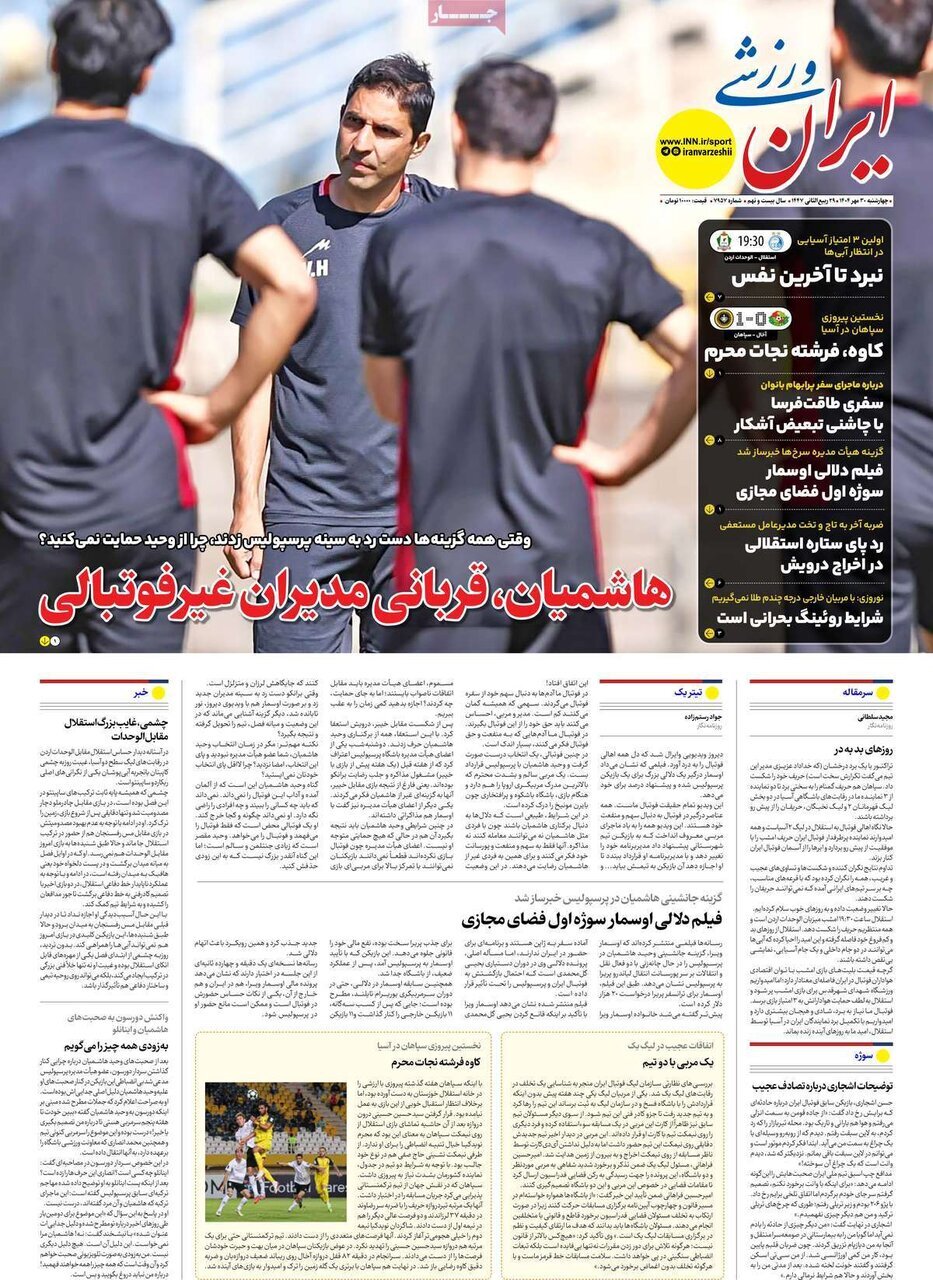 تصاویر روزنامههای امروز چهارشنبه ۳۰ مهر ۱۴۰۴ را میبینید.