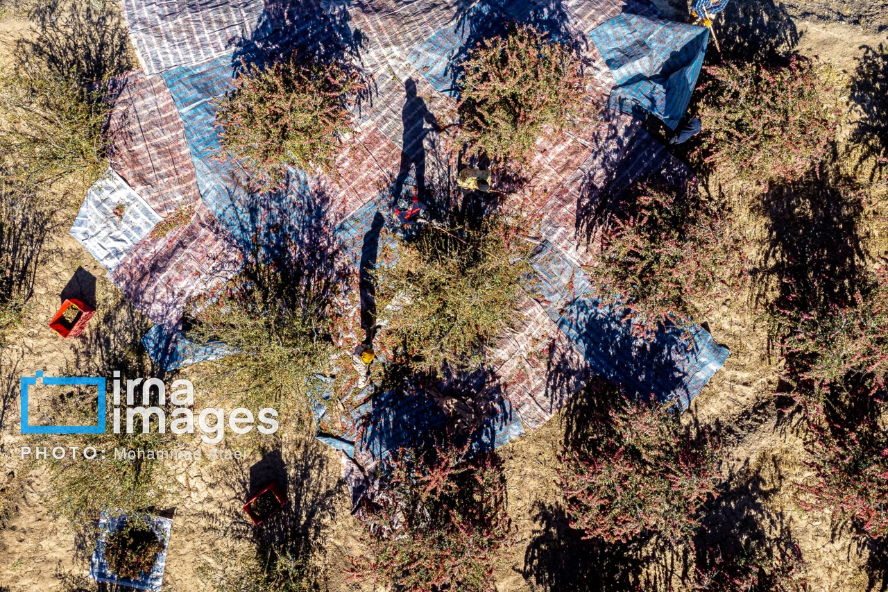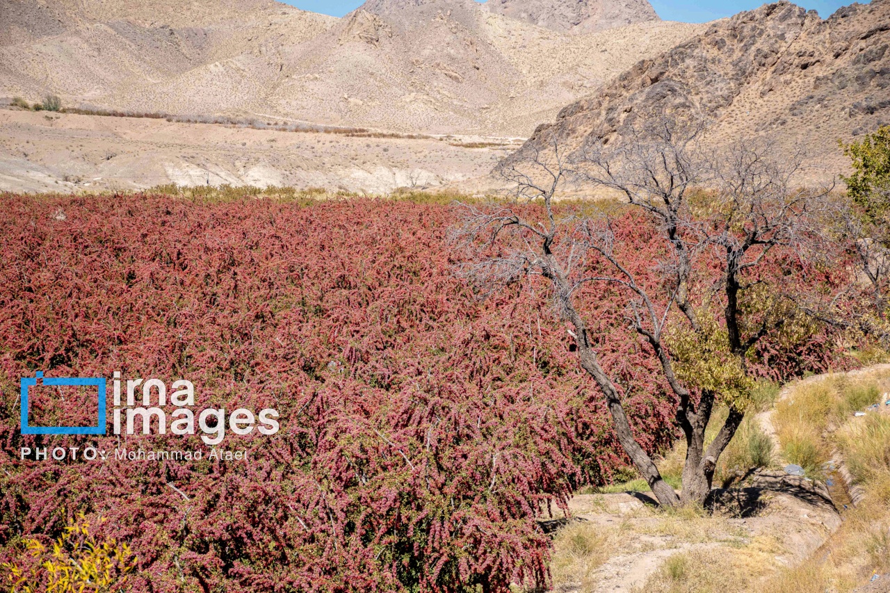زمان برداشت زرشک در این منطقه از نیمه دوم مهرماه تا اواخر آبان است و طی این مدت، مناظر سرخرنگ مزارع زرشک جلوهای ویژه به طبیعت منطقه میبخشند.