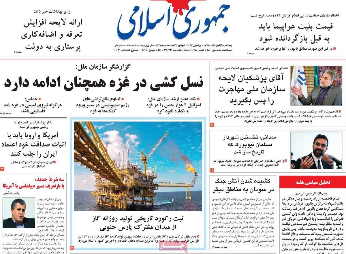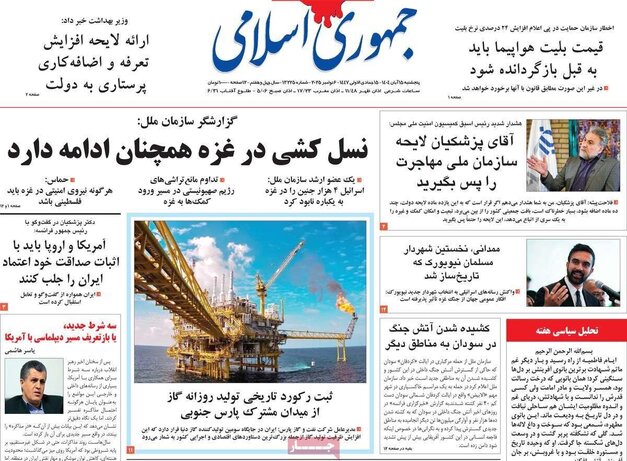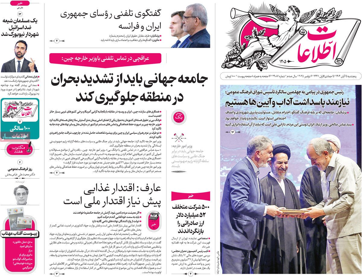 روزنامههای امروز پنجشنبه ۱۴۰۴/۰۸/۱۵