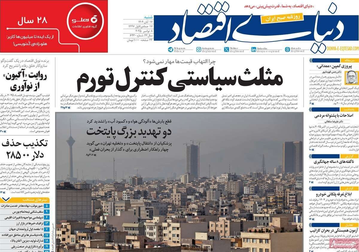 تصاویر روزنامه‌های امروز شنبه ۱۷ آبان ۱۴۰۴ را می‌بینید.