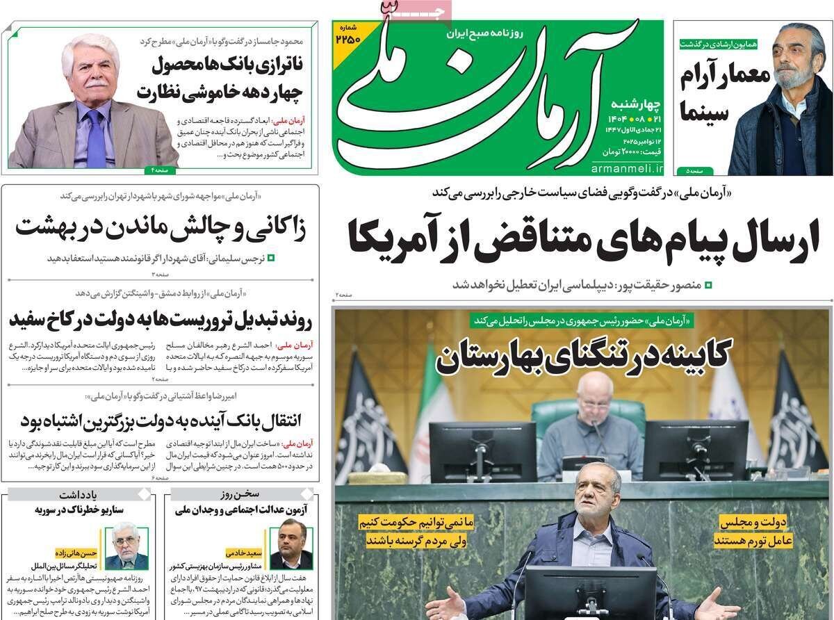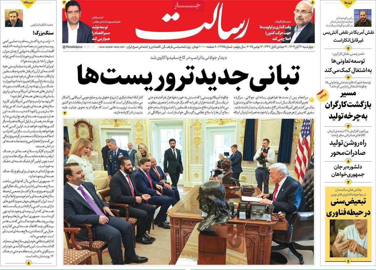 تصاویر روزنامههای امروز چهارشنبه ۲۱ آبان ۱۴۰۴ را میبینید.