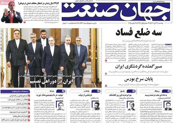 تصاویر روزنامههای امروز پنجشنبه ۲۲ آبان ۱۴۰۴ را میبینید.