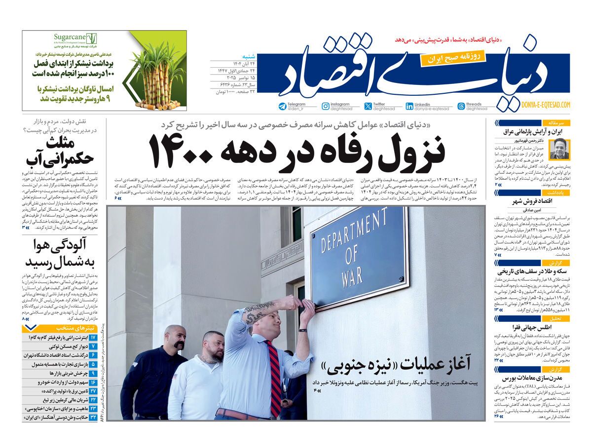 تصاویر روزنامه‌های امروز شنبه ۲۴ آبان ۱۴۰۴ را می‌بینید.