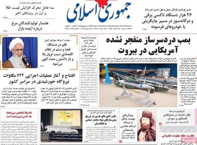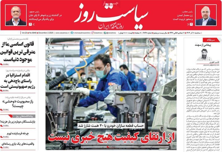 تصاویر روزنامه‌های امروز سه‌شنبه ۱۱ آذر ۱۴۰۴ را می‌بینید.