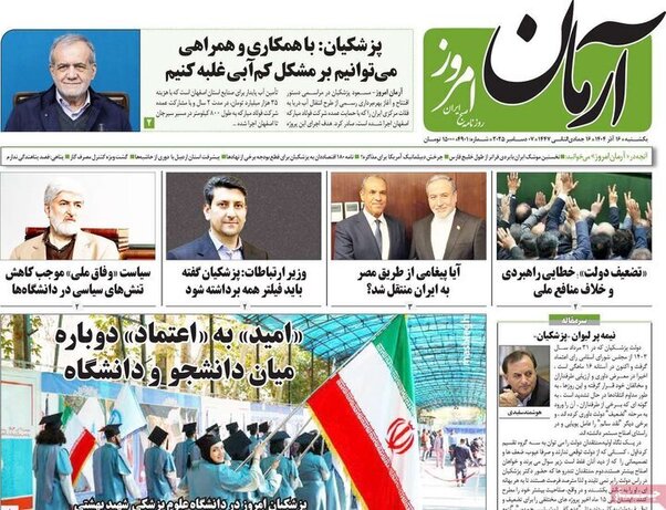 روزنامههای امروز یکشنبه ۱۴۰۴/۰۹/۱۶