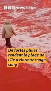 شبکه خبری فاکس نیوز در مورد این پدیده جالب نوشت: جزیره هرمز در خلیج فارس، پس از بارش شدید باران که ساحل سرخ این جزیره را فرا گرفت، به رنگ سرخ تیره درآمد. گفته میشود آب باران با رسوبات غنی از مواد معدنی و آب دریا مخلوط شده و صحنهای پر جلوه و به رنگ قرمز خونین ایجاد کرده است.