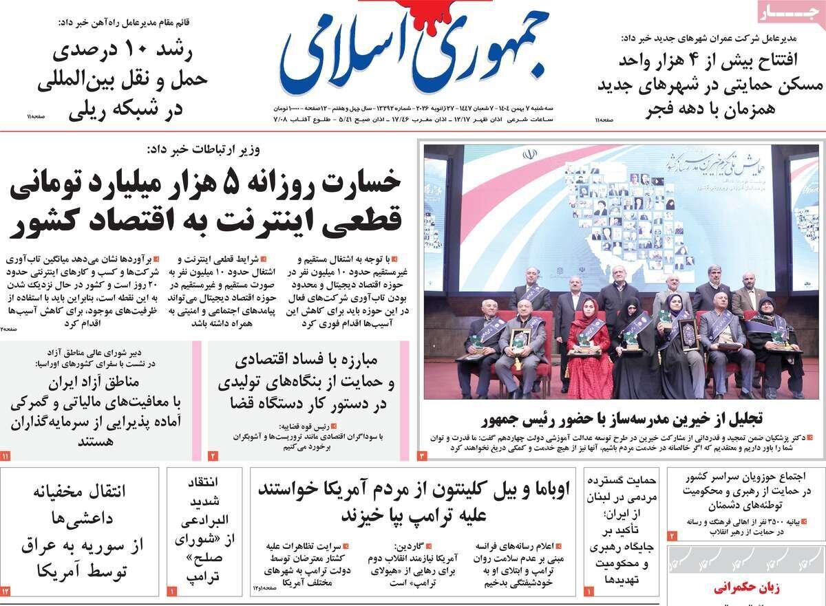 صفحه اول روزنامههای سه شنبه ۷ بهمن ۱۴۰۴ را می بینید:
