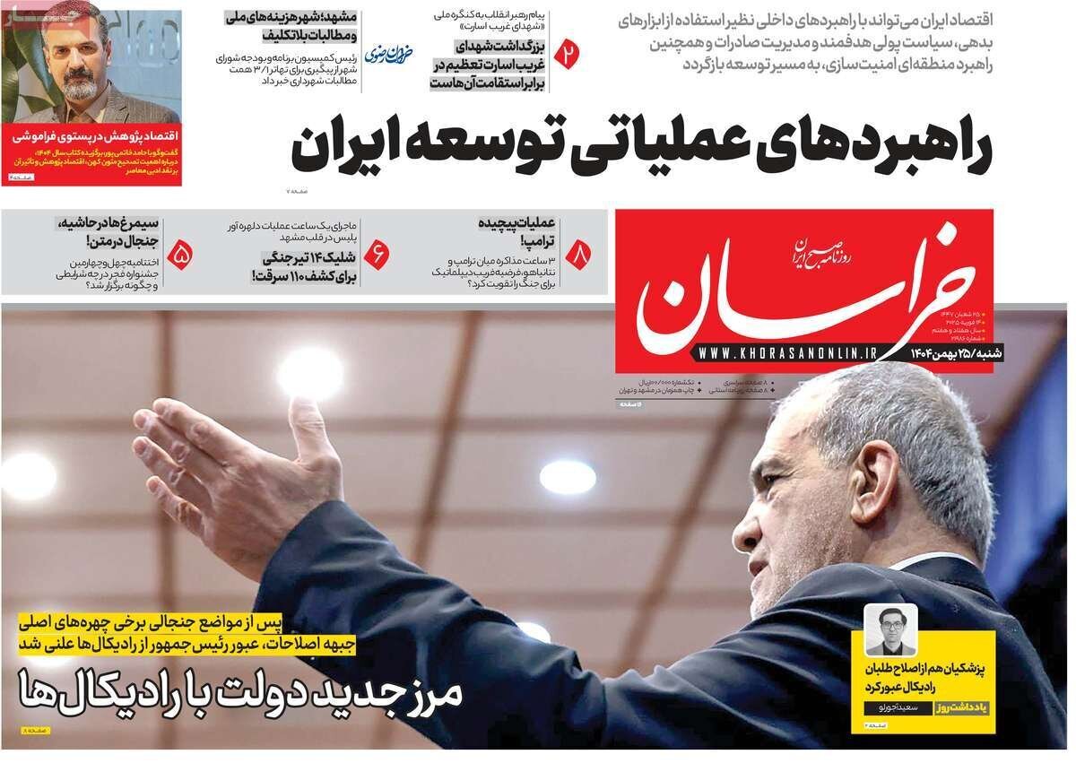 تصاویر صفحه اول رونامههای شنبه ۲۵ بهمن ۱۴۰۴ را می بینید: