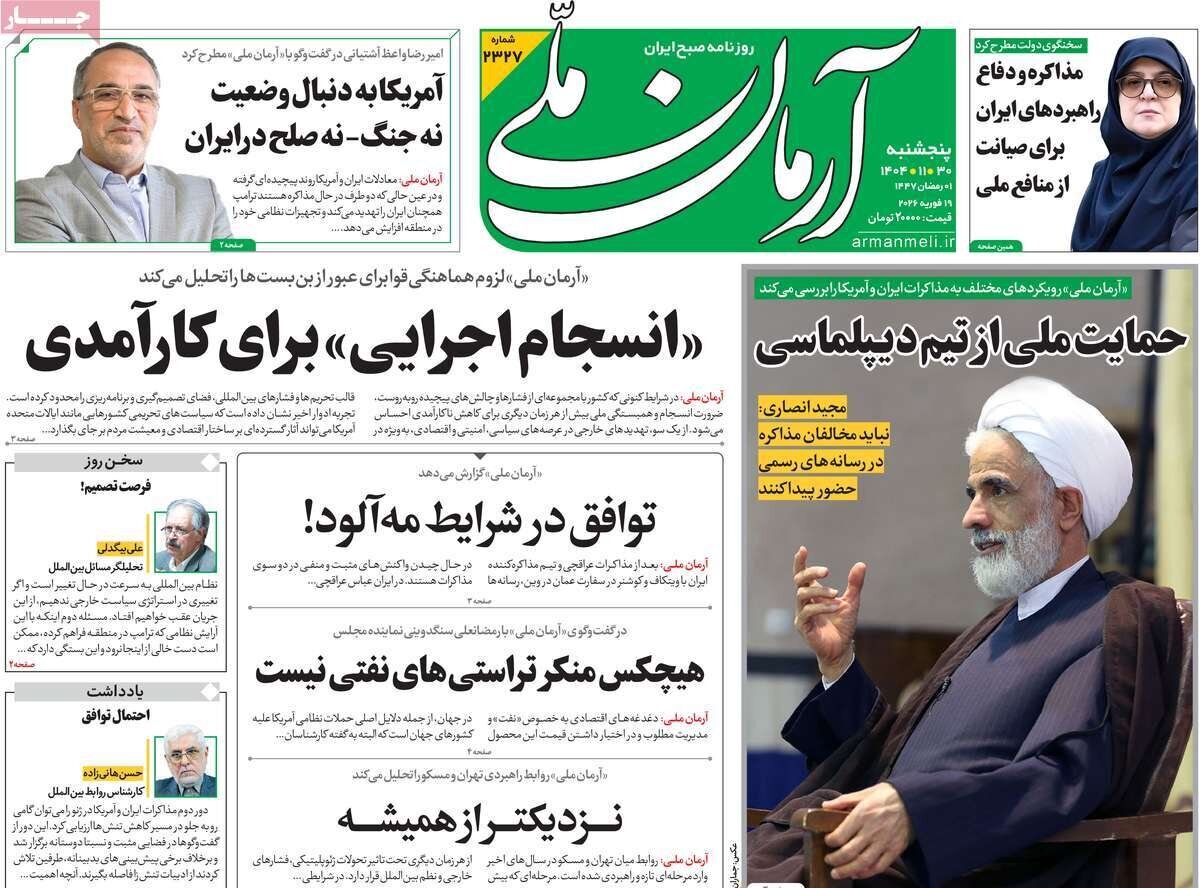 روزنامههای امروز پنج شنبه ۱۴۰۴/۱۱/۳۰