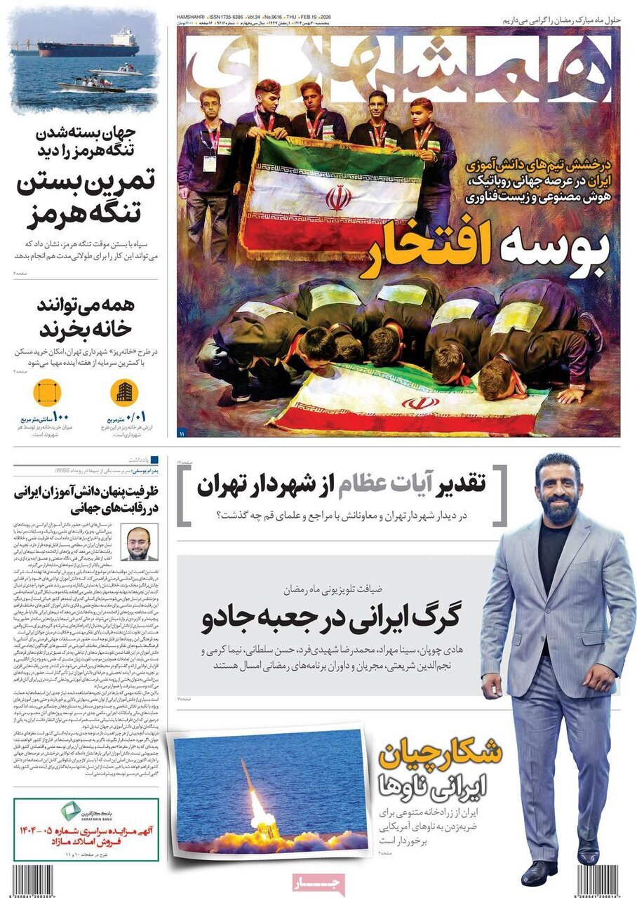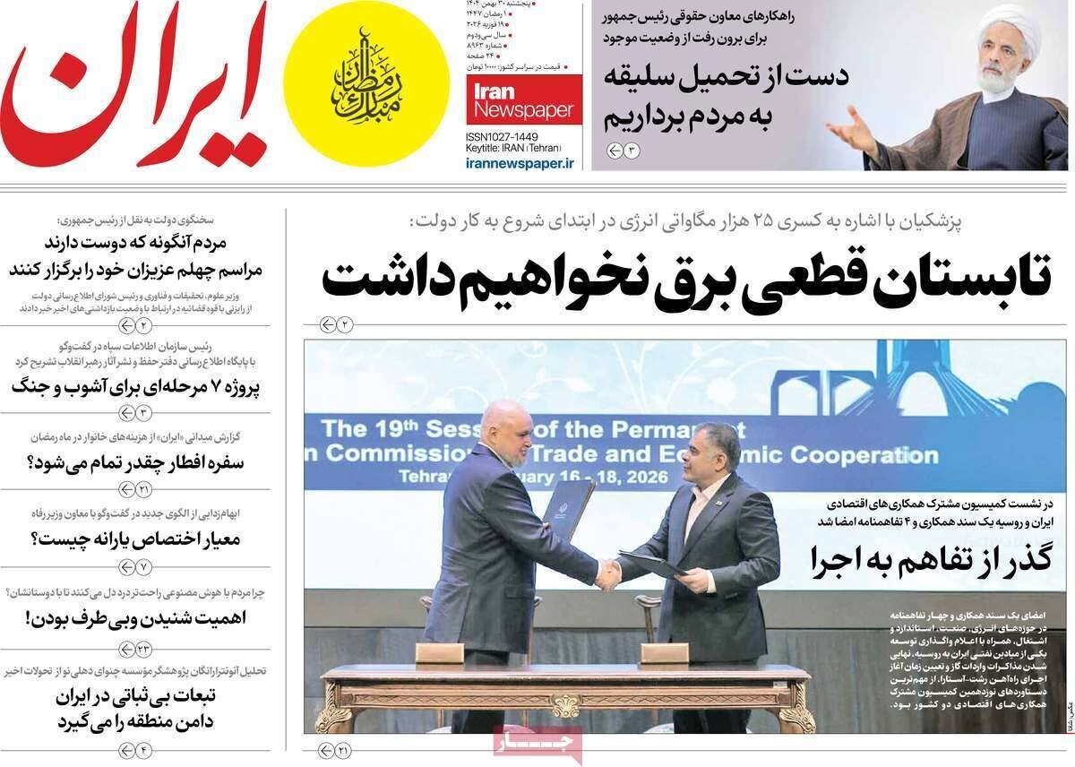 صفحه اول روزنامههای پنج شنبه ۳۰ بهمن ۱۴۰۴ را می بینید: