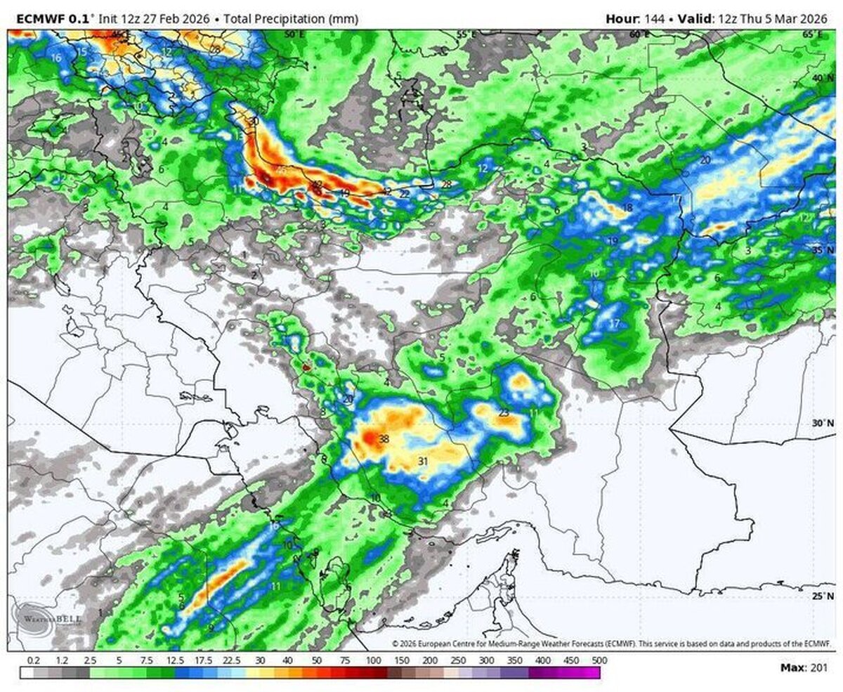 هواشناسی ۱۴۰۴/۱۲/۱۴ / آغاز فعالیت موج جدید بارشها از امروز؛ ورود سامانه جدید از روز شنبه