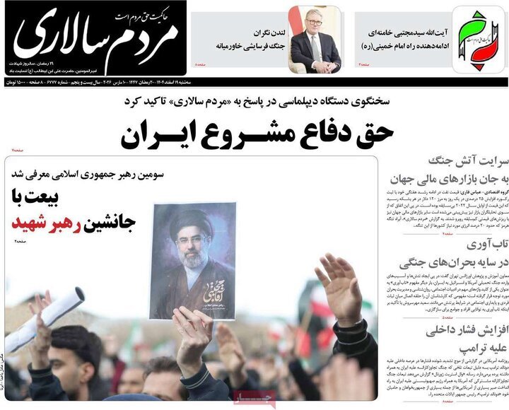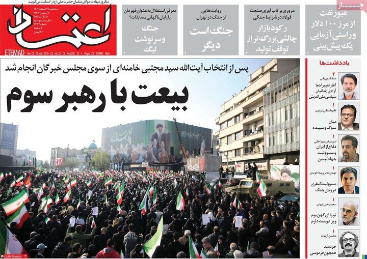 تصاویر روزنامه‌های امروز سه شنبه ۱۹ اسفند ۱۴۰۴ را می‌بینید.