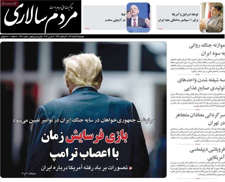 تصاویر روزنامههای امروز دوشنبه ۲۵ اسفند ۱۴۰۴ را میبینید.