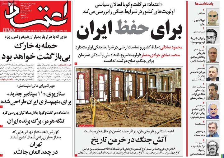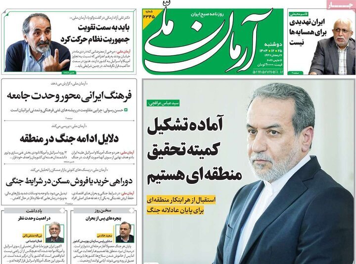 روزنامههای امروز دوشنبه ۱۴۰۴/۱۲/۲۵