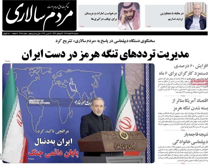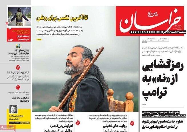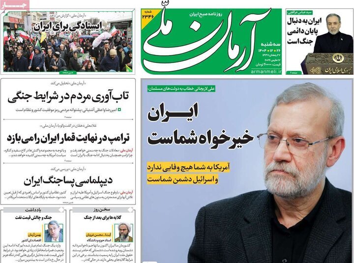 تصاویر روزنامه‌های امروز سه شنبه ۲۶ اسفند ۱۴۰۴ را می‌بینید.