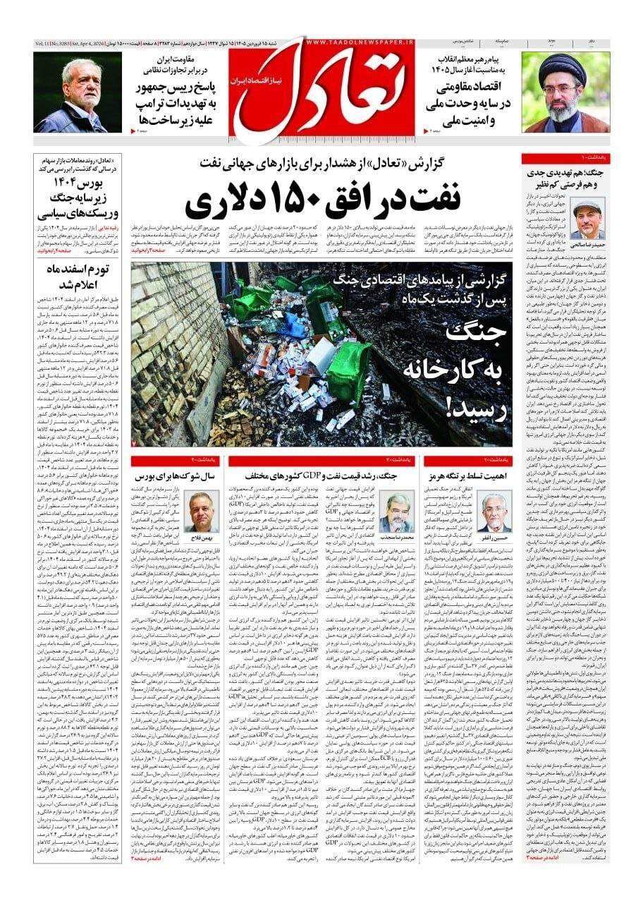 صفحه نخست روزنامههای شنبه ۱۵ فروردین را می بینید:
