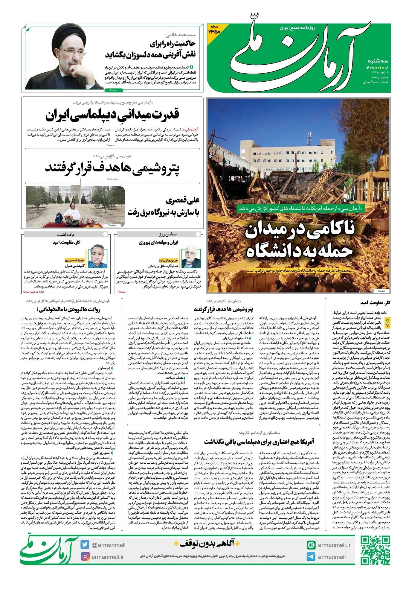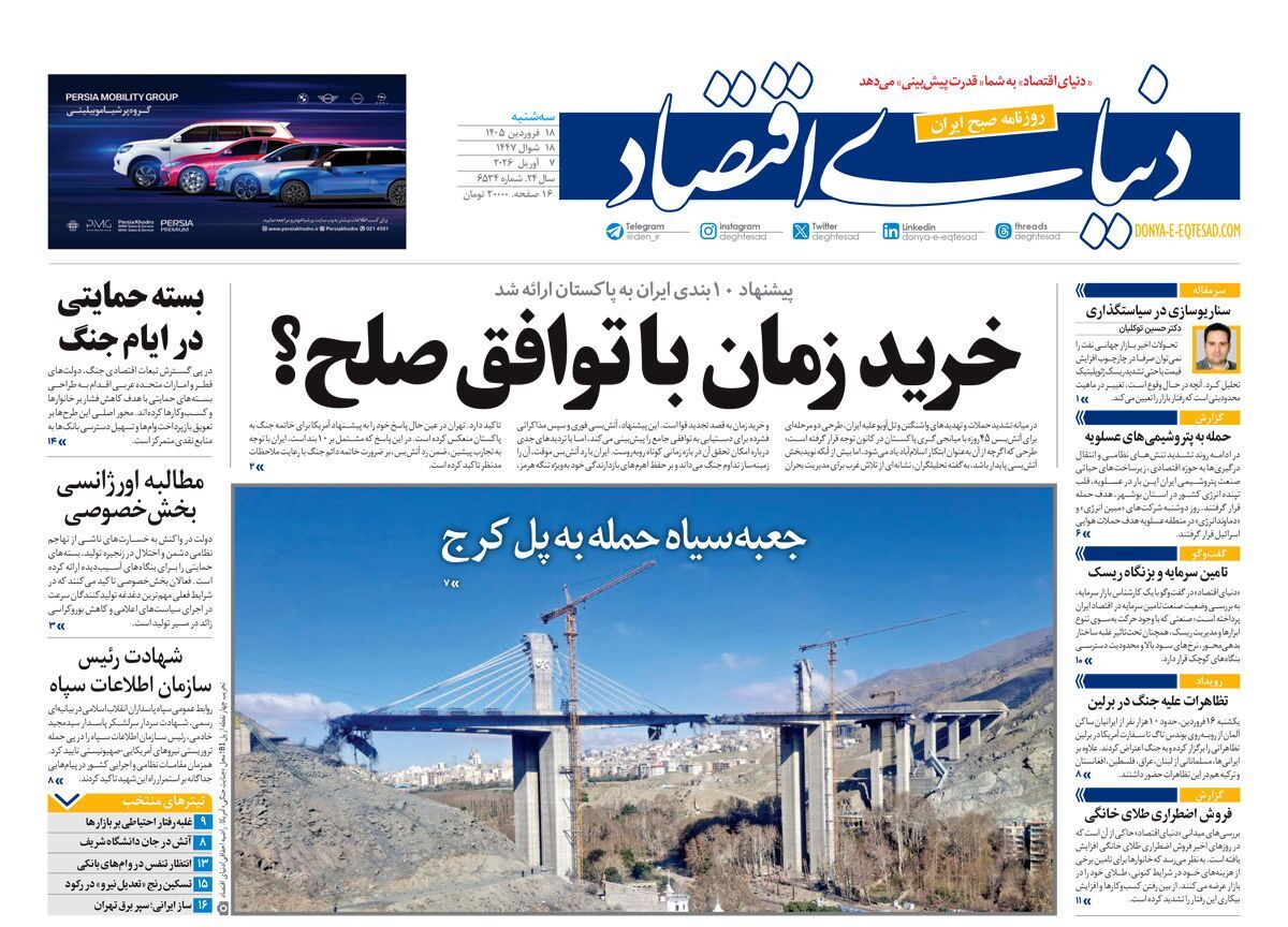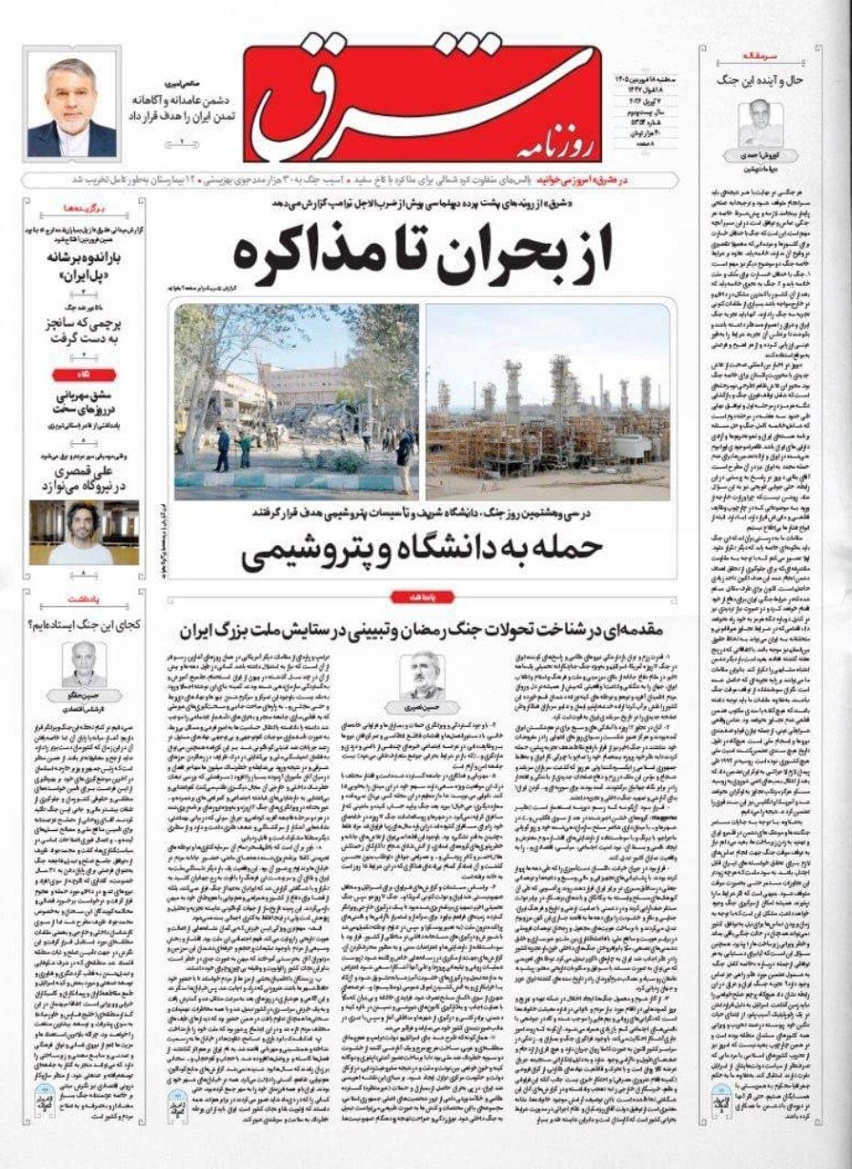 تصاویر صفحه نخست روزنامههای سهشنبه ۱۸ فروردین را می بینید: