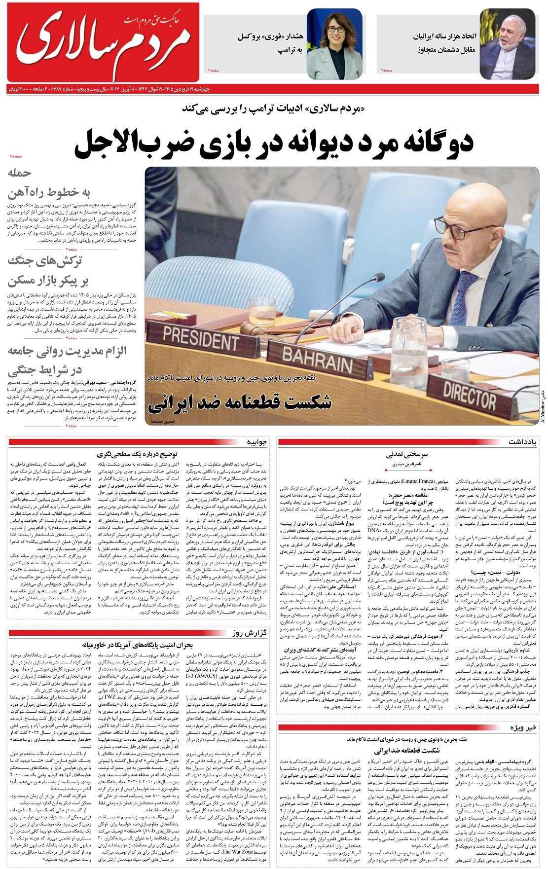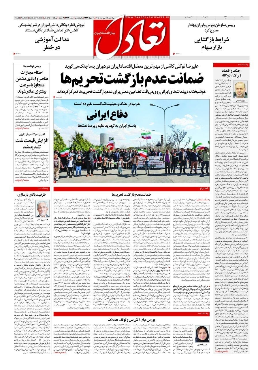 تصاویر صفحه نخست روزنامههای چهارشنبه ۱۹ فروردین را می بینید:
