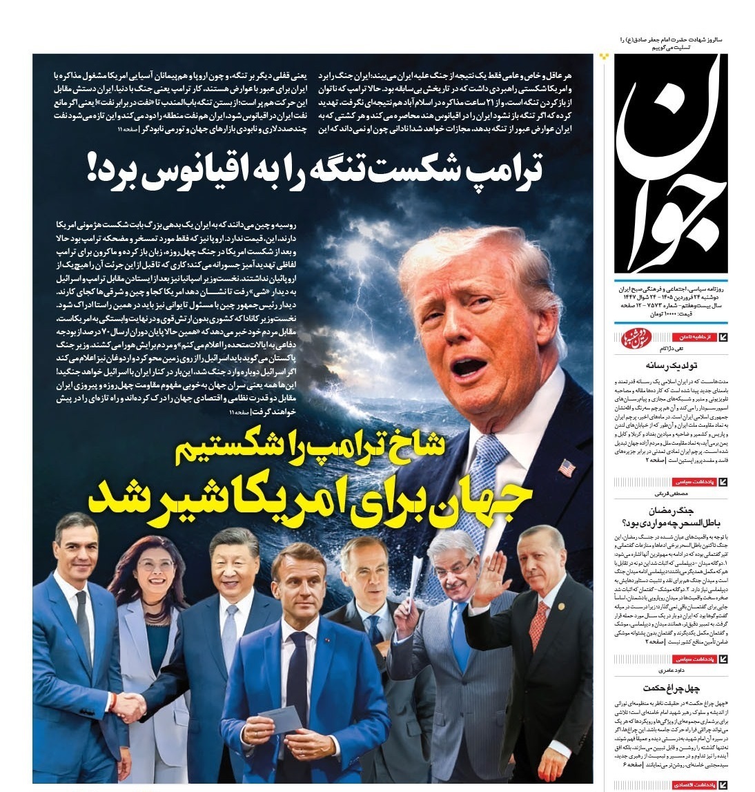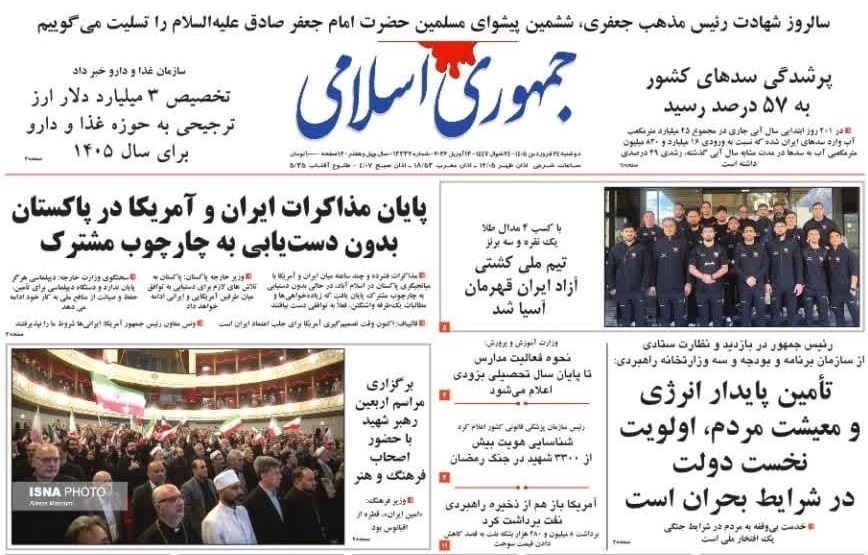 روزنامههای امروز دوشنبه ۱۴۰۵/۰۱/۲۴