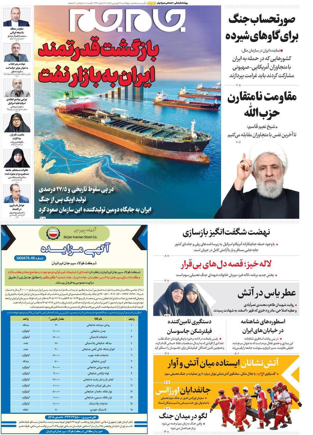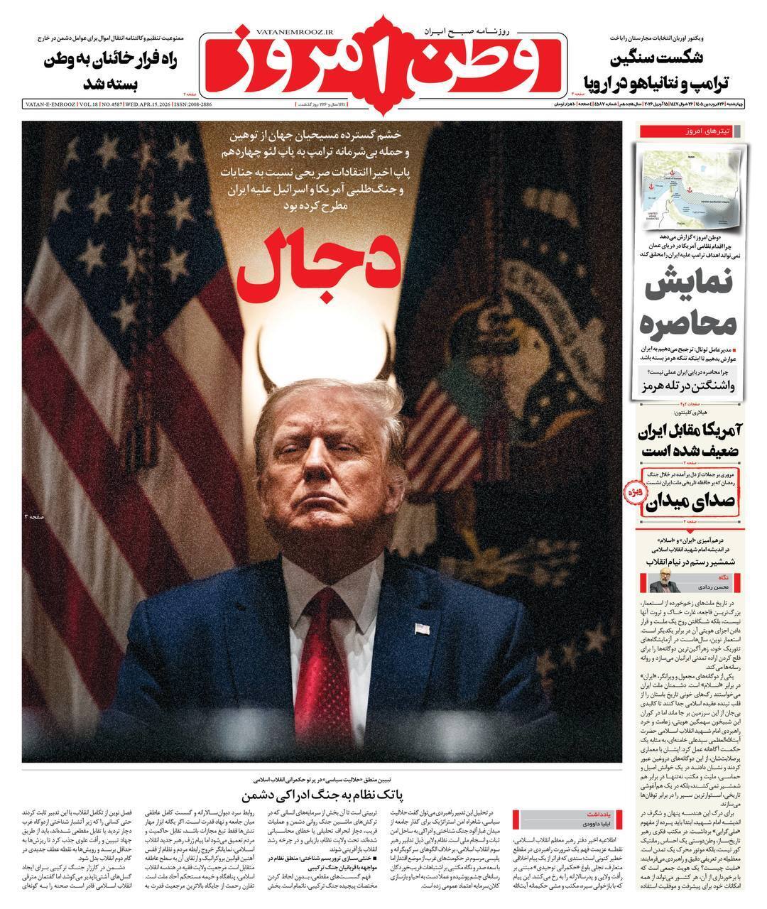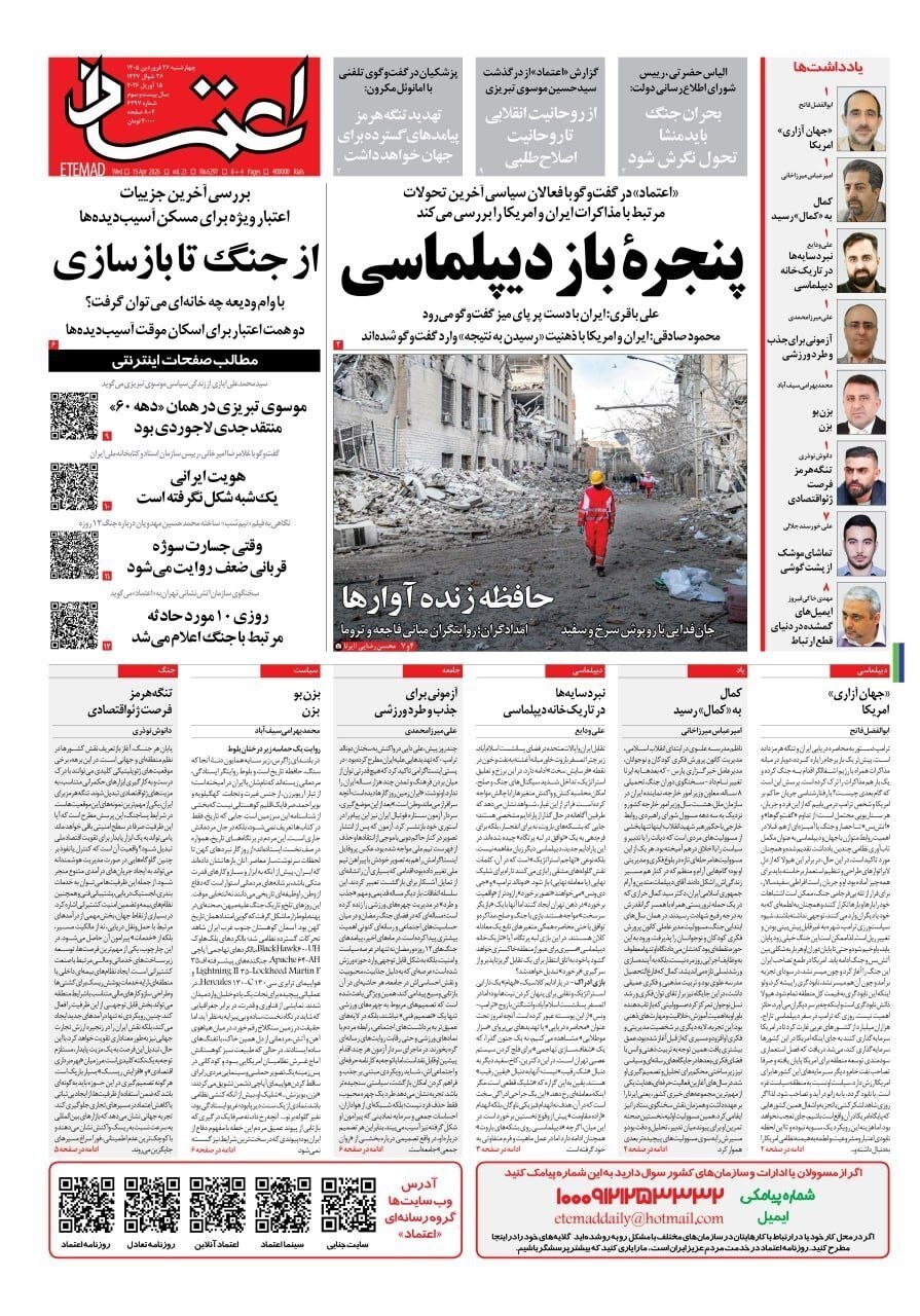 روزنامههای امروز چهارشنبه ۱۴۰۵/۰۱/۲۶