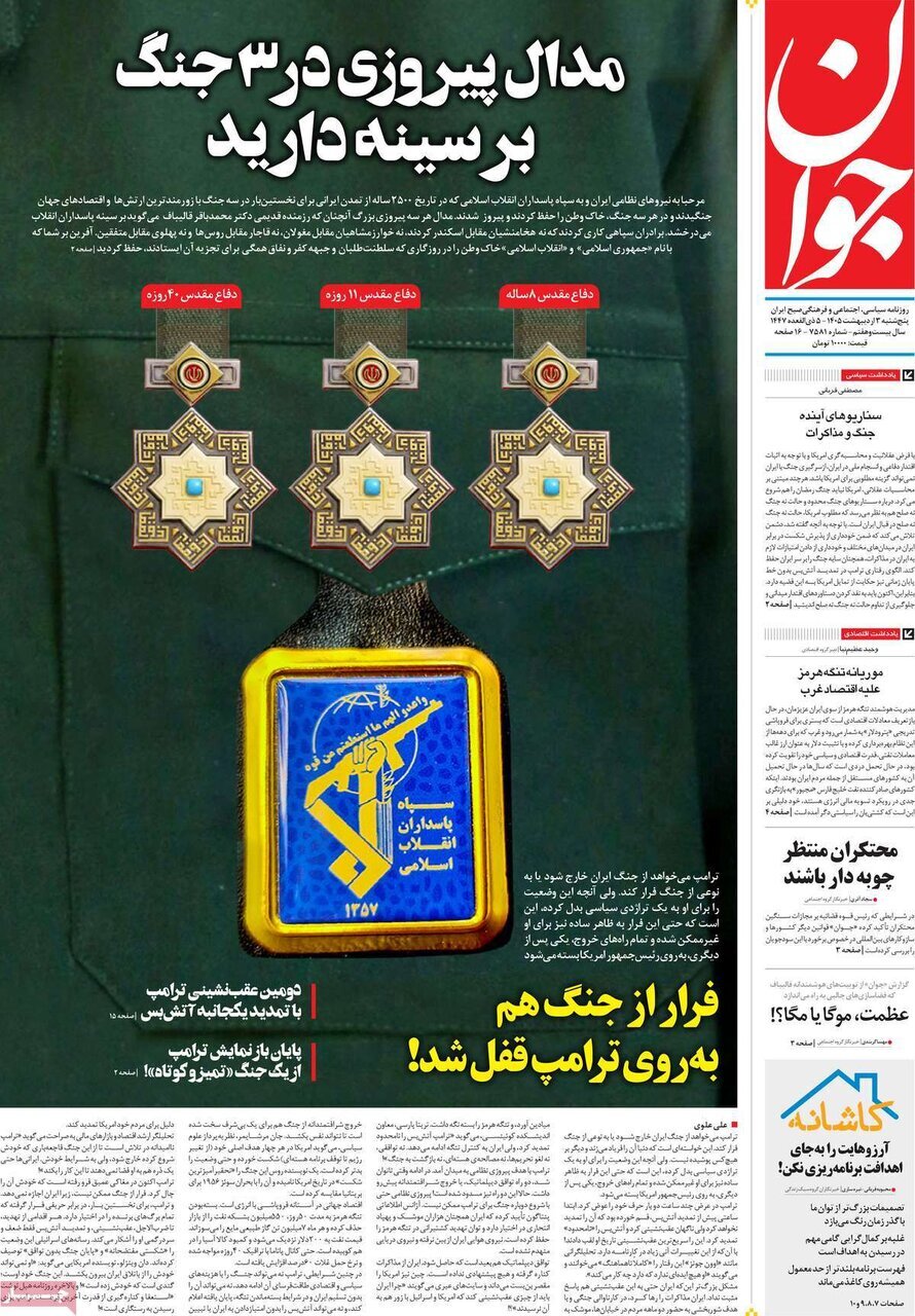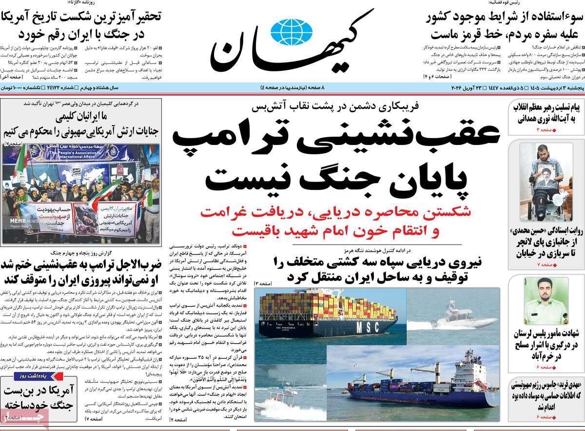 تصاویر صفحه نخست روزنامههای امروز پنج شنبه ۱۴۰۵/۰۲/۰۳ را می بینید: