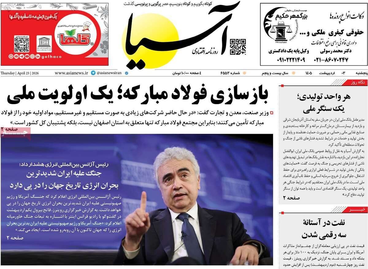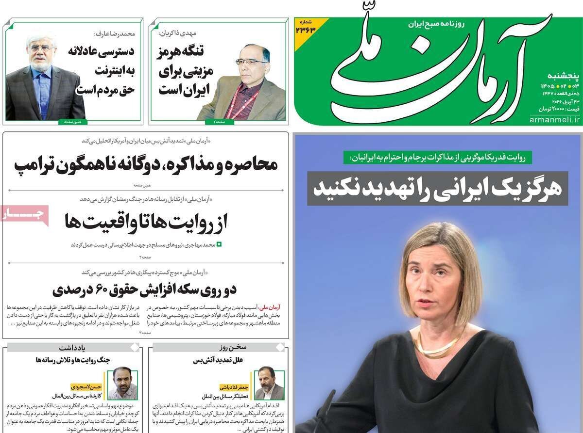 روزنامههای امروز پنج شنبه ۱۴۰۵/۰۲/۰۳