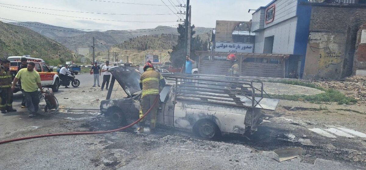 آتش‌سوزی خودروی حامل تینر در پمپ بنزین جاجرود