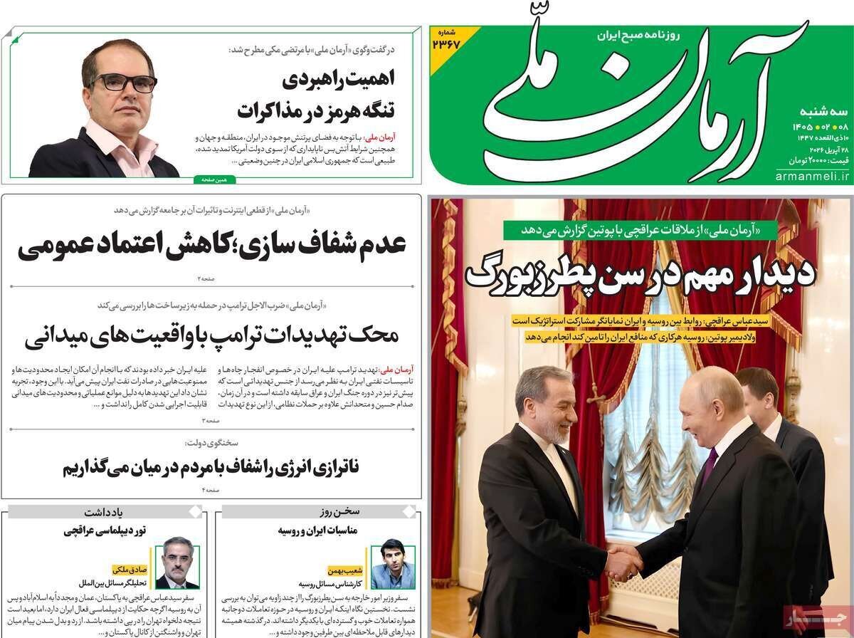روزنامههای امروز دوشنبه ۱۴۰۵/۰۲/۰۸