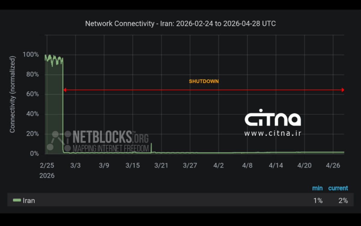 این نهاد افزود: دادههای پایش شبکه نشان میدهد این خاموشی اکنون پس از ۱۴۱۶ ساعت وارد شصتمین روز خود شده و همچنان ادامه دارد؛ آن هم در شرایطی که تلاش ها برای اتصال برخی گروهها به دسترسی لایهبندیشده و ویژه جریان دارد.