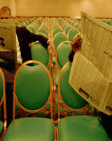 گرداننده این جلسه مایکل لدین عضو دولت رونالد ریگان رئیس جمهور اسبق آمریکا و از دست اندارکاران ماجرای ایران کنترا بود. لدین که به خاطر برنامه ریزی برای برگزاری این جلسه طی هفته های گذشته هدف حملات لفظی شدید بسیاری از ایرانیان مقیم آمریکا قرار گرفته و متهم به طرح ریزی برای تجزیه ایران شده است در ابتدای این نشست این اتهام ها را رد کرد و گفت هدفش تنها "آموزش" مردم آمریکا درباره اقوام مختلف در ایران است. اما حضور دو سیاهپوست تنومند در کنار دو در ورودی سالن کنفرانس حکایت از نگرانی برگزارکنندگان این جلسه از بروز ناآرامی و درگیری داشت. در بیرون از ساختمان محل برگزاری کنفرانس عده ای با در دست داشتن پلاکاردهایی نظیر "لدین=اسرائیل=امپریالیسم" و "آمریکن انترپرایز دست از سر ایران بردار" مخالفت خود را با این جلسه ابراز کردند. حضور نمایندگان بسیاری از رسانه های خبری و نیز اعضای برخی سفارتخانه های اروپایی نیز حاکی از اهمیت این نشست داشت.
