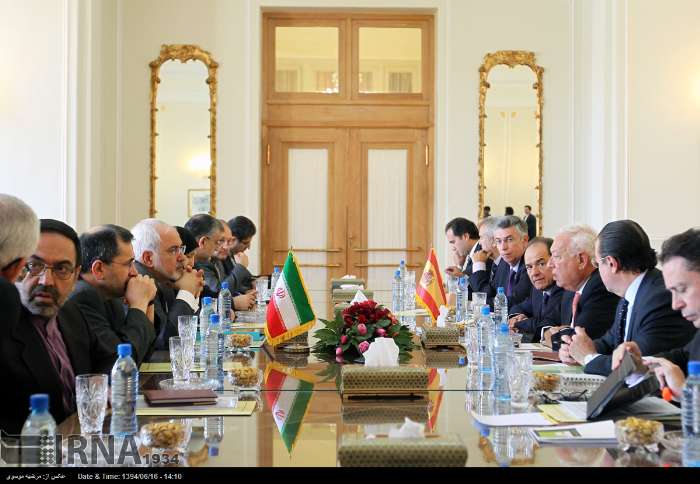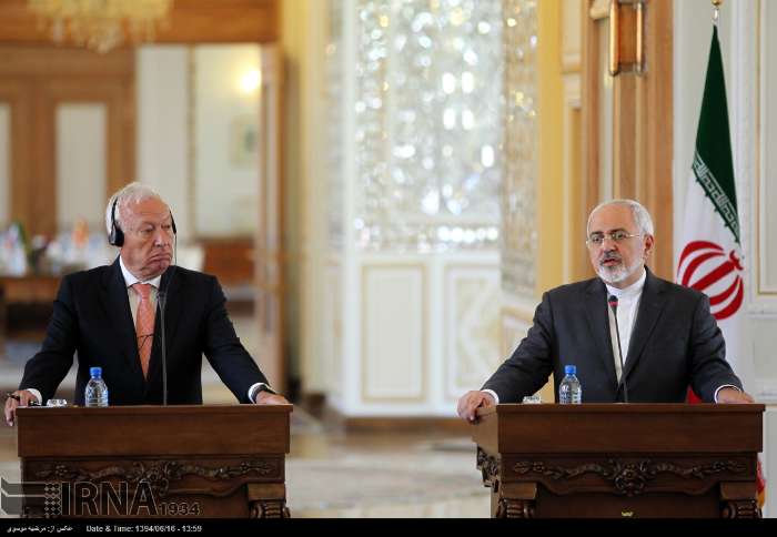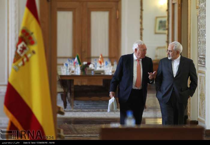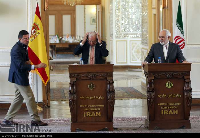 «خوزه مانوئل گارسیا مارگایو» و محمدجواد ظریف وزرای امور خارجه اسپانیا و ایران روز دوشنبه در محل وزارت امور خارجه با یکدیگر دیدار و پس از آن در کنفرانس مشترک مطبوعاتی به سوالات خبرنگاران پاسخ دادند.
