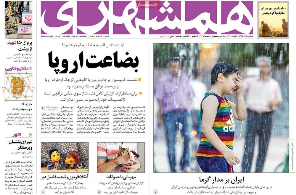 تصاویر| روزنامههای یکشنبه، ۹ تیر