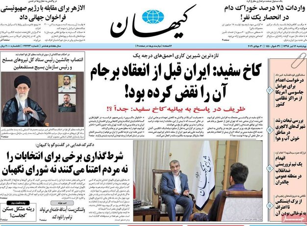 انتصاب جانشین رئیس ستاد کل نیروهای مسلح و رئیس بسیج به حکم فرمانده کل قوا، سخنگوی قوه قضائیه دوباره تاکید کرد: مجرم سیاسی نداریم و مدیرکل زندانهای استان تهران تغییر کرد از جمله عناوین صفحه اول روزنامههای امروز کشورند.