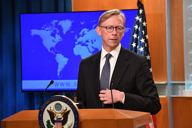 برایان هوک که به همراه مایک پمپئو وزیر خارجه آمریکا برای حضور در نشست شورای امنیت درباره خاورمیانه به نیویورک سفر کرده است، در گفتوگویی با خبرنگاران گزینشی خود این مطلب را مطرح کرد.