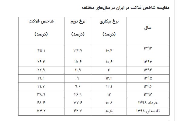 اما وضعیت ایران به چه صورت است؟ همانطور که پیش از این گفتیم، ایران جزء کشورهایی است که نرخ بالای شاخص فلاکت را دارد. آمارهای تازه نشان می‌دهد که شاخص فلاکت ایران دوباره به رقم ۵۳.۲ درصد در تابستان ۹۸ رسیده است.