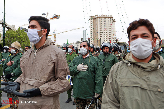 یگان‌های نیروی زمینی سپاه صبح روز یکشنبه، ۱۰ فروردین رزمایش دفاع بیولوژیک برای مقابله با ویروس کرونا را در شهر مشهد با ضدعفونی معابر شهری برگزار کردند.