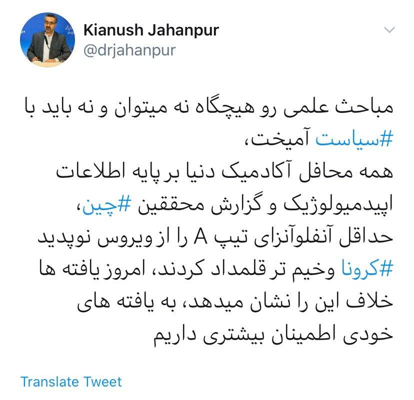 سحنگوی وزارت بهداشت همچنین در توئیت دیگری نوشت: کشورهایی که عملا به چهارراه عبور و مرور شباهت بیشتری دارند ولی هنوز هم به سیاست کتمان خود ادامه میدهند، به سلامت مردم خود و جهان ازین رهگذر آسیب زدند و میزنند.