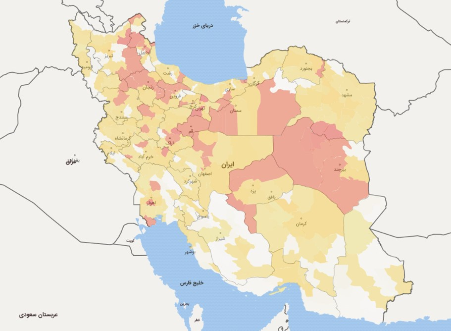 نقشه بهروز از وضعیت شهرستانهای کشور.