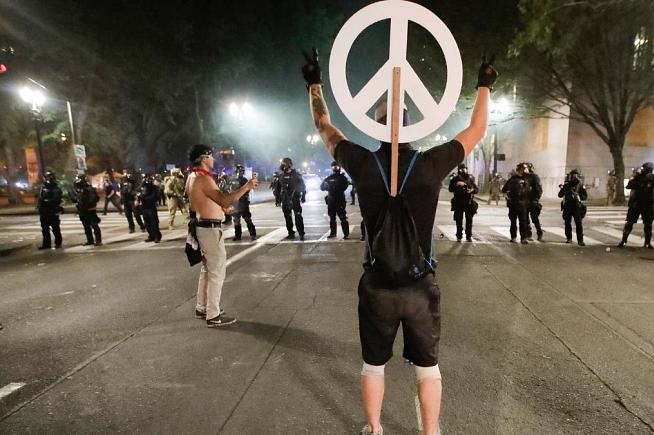 مسئولان دموکرات ایالت اورِگِن، جایی که پورتلند در آن واقع شده همانند دیگر ایالتهای تحت کنترل دموکراتها به شدت مخالف رویکرد مصرانه دولت ترامپ برای اعزام نیروهای فدرال به مناطق تحت نظارت آنها جهت مهار و سرکوب اعتراضها به برخوردهای تبعیض آمیز و نژادپرستانه است که پس از مرگ جرج فلوید، جوان سیاه پوست آمریکایی بسیاری از شهرهای ایالات متحده را فرا گرفت.