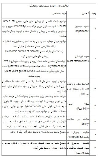 روند اجرای اولویت بندی عناوین پژوهشی و استخراج شاخصها