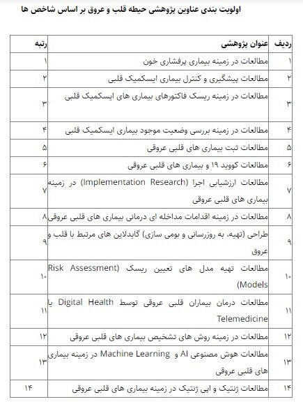 ماموریت تعیین اولویتهای پژوهشی حیطه قلب و عروق به بهرهبرداری رسیده است