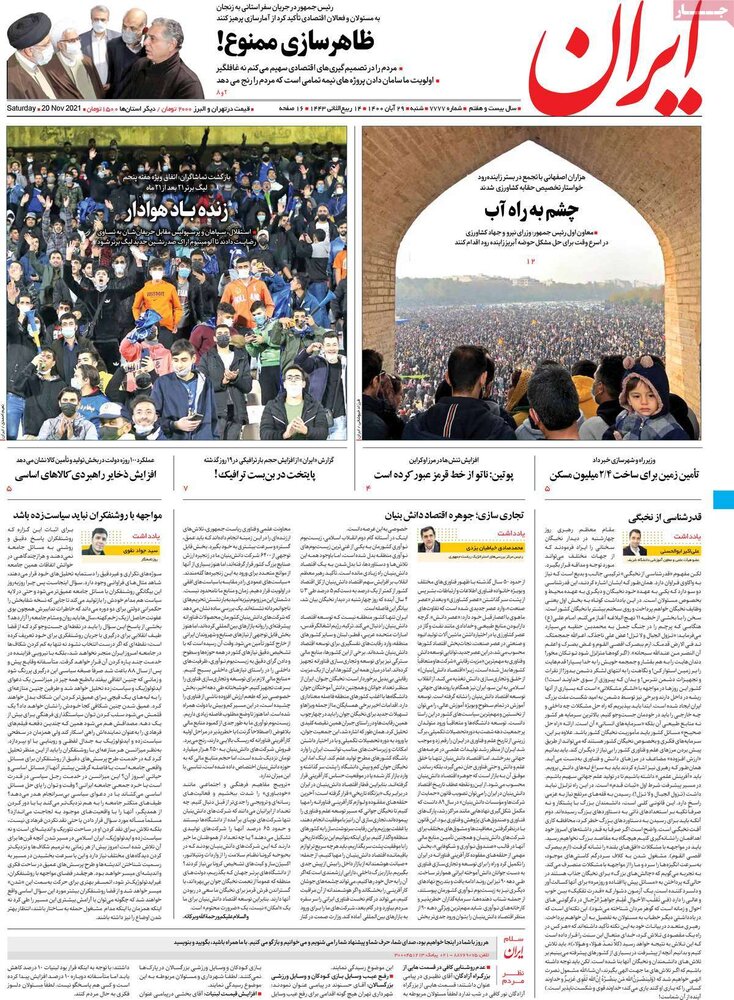 تجمع مردم اصفهان در بستر خشک زاینده رود و درخواست رفع مشکل کم آبی مهمترین موضوع روزنامههای امروز (شنبه ۲۹ آبانماه) ایران است.
